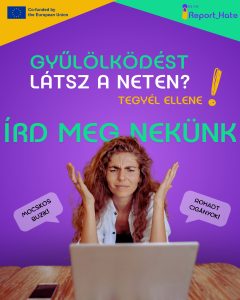 A „Report Hate” egy 24 hónapos Erasmus+ program, amely azzal a céllal jött létre, hogy a fiataloknak lehetősége legyen aktívan fellépni a gyűlöletbeszéd ellen. Ennek érdekében további hat partnerrel szorosan együttműködve létre kívánjuk hozni az első nemzetközi gyűlöletbeszéd bejelentő portált, célzottan az ifjúság számára. A projekt részét képezi egy olyan magyarországi hálózat kiépítése is, amelynek tagjai bevonhatók a gyűlöletbeszéddel kapcsolatos párbeszédekbe, illetve a portál aktív használatának elősegítésébe. Ugyanezen célokat szolgálja az a széleskörű médiakampány, amely végig kíséri a teljes megvalósítást.