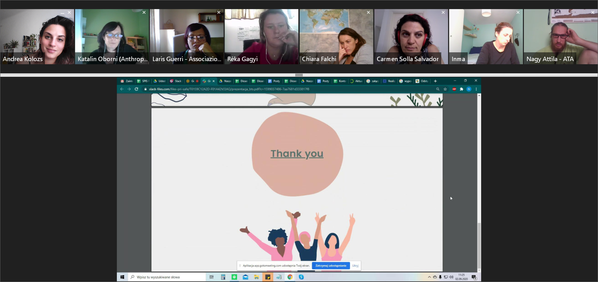 Final meeting / Budapest / Hungary / 2-3 September 2020The second transnational meeting of the project (Final Evaluation Meeting) was held online. The partnership planned to have this meeting in Romania, hosted by ATA. However, because of the pandemic and lockdowns, we postponed it, then we agreed that it is safer to move this meeting into the online space. The meeting was a two-day event, including a workshop for project writing in the field of GBV. The meeting was organized by the collaboration of Anthropolis A. and ATA. Partner organisations delegated two persons to this meeting: one person was the coordinator of the project; the other person was responsible for the dissemination tasks at the organisation. The primary purpose was to evaluate the project and discuss all the relevant issues for closing the project.