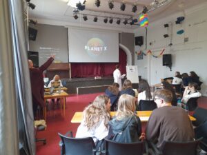 Az interaktív előadást szlovén partnereink a Matafir, az Umanotera és a Humanitas dolgozta ki, több szlovén iskolai bemutató után Budapesten az Arany János Gimnázuimban és a Veres Pálné Gimnáziumban is kipróbálhatták a diákok.